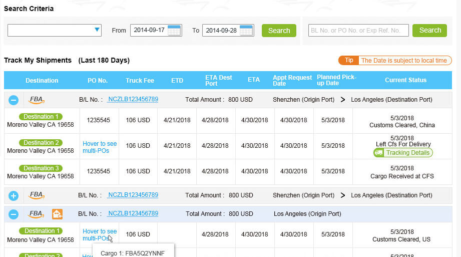 Through our interactive interface, user can easily get a desired to-door quote in just seconds after completing the required fields. Inquiries can be saved for future quoting purpose. We WinToDoor.Com has just launched the groundbreaking “Multi-destination real-time Inquiry” service that nobody in this business could provide it yet. F To give our FBA service users an even more accurate quote, the inquiry feature dedicated to Amazon FBA service is officially online. Click the Amazon FBA panel on the right and input the FBA Code accordingly, you will get our quote for delivering your cargoes to the specified FBA warehouse immediately. Of course, the “Amazon FBA” inquiry service supports the “Multi-destination real-time Inquiry” service as well.